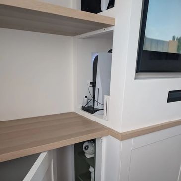 Our media walls offer an elegant and efficient way to improve a rooms look and storage capacity with integrated shelves and cupboards that help de-clutter and open up room for other furniture and decorations.
